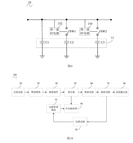 電容電路,電容電路的電容值可調;和與電容電路聯接的調理器件,調理器件用于在開關電源上電過程中按照設定時序調整電容電路的電容值以改動啟動電路的電容值。如此,避免了開關電源發動時對MOS管等器件構成損壞,一同開關電源在發動后能堅持安穩的輸出。