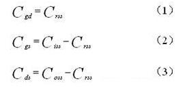 帶外接電容C2的N型MOS管極間電容等效電路MOS管的極間電容柵漏電容Cgd、柵源電容Cgs、漏源電容Cds能夠由公式確定,公式中MOS管的反應電容Crss,輸入電容Ciss和輸出電容Coss的數值在MOS管的產品技術手冊上能夠查到。公式如下: