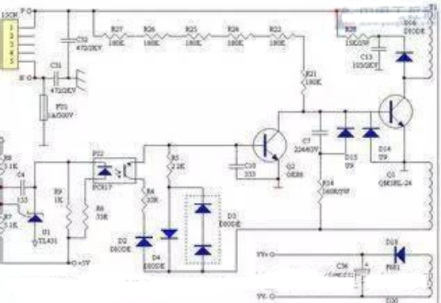 1、先用電阻丈量法丈量開關管Q1有無擊穿短路現象,電流取樣電阻R4有無開路。電路易損壞元件為開關管,當其損壞后,R4因受沖擊而阻值變大或斷路。Q1的G極串聯電阻、振動芯片PC1往往受強電沖擊而損壞,須同時替換;檢查負載回路有無短路現象,打掃。